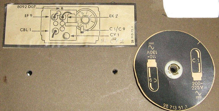 Ja asteikko. Putket EK2, EF9, CBL1, CY1 ja riippuen käyttöjännitteestä C9 110V:lla tai C1 220V:lla.