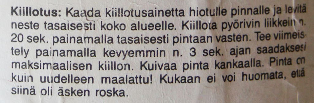 5. Viimeistely ja puhdistus bensalla ja tinnerillä jotta saa kaiken mahdollisen kiillotusaineessa olevan vahan pois sekä sormenjäljet (rasvan).