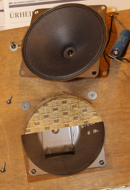 Kondensaattori on myös entinen, pitäisi olla 50 µF – mittari näytti kuitenkin 99 µF. Täytyy Uraltonesta ostaa 4” elementti tilalle ja ruveta suunnittelemaan suodatinta.
