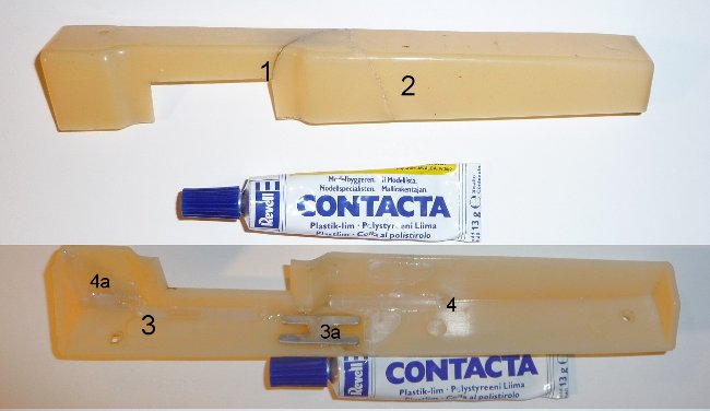 korjauksen vahvistus epoksiliimalla. Tämä osa on jo erittäin haurasta plastiikkaa ja liukenee myös ksyleeniin, jota