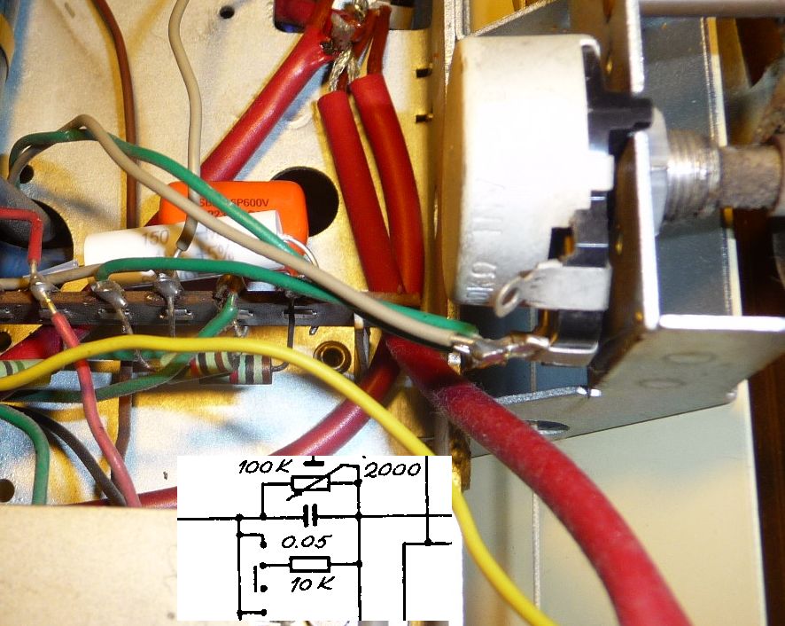 Ensin vaihdoin useimmat äänitaajuuspuolen kondensaattorit EABC80 triodin ja pääteputken EL84  ympäriltä sekä korjasin kytkennät näköviritysputkelle (EM80). Äänen värin säätöpuolelle en vielä koskenut, vaan jätin sinne kaksi 2 nF pikikonkkaa.