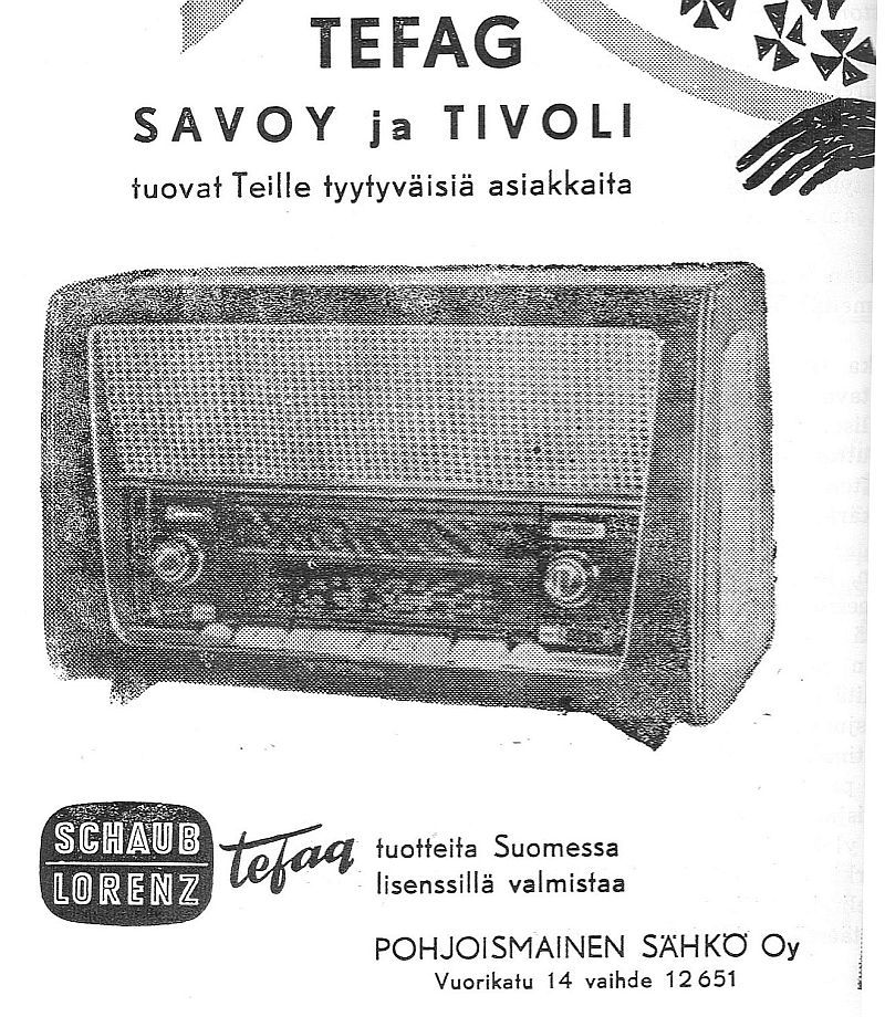 PSO Pohjoismainen Sähkö Oy oli Schaub-Lorenzin maahantuoja ja valmisti lisenssillä radioita Suomessa ja käytti niissä Tefag-merkkiä.