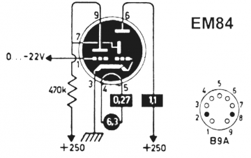 Moikka, vanhetessaan EM84 putki yleensä himmenee. Mittasit jännitteet ennen ja jälkeen anodivastuksen josta laskemalla saa virraksi 0,37 mA mikä on käsittääkseni ruodussa, tarkista vielä hehkujännite ja hehkulangan vastusarvo (EM80= 3,3 -3,5 ohm) ja laske hehkuvirta - vertaa ohje-arvoihin. Hilalle tuleva jännite pitäisi vaihdella -22 ja 0 v välillä, viimeksi mainitulla täysi näyttö. Tarkista myös hilajännitteen taso ja putken näyttö, jos ilmaisimelta tulee n. -20 V max. se on kunnossa.