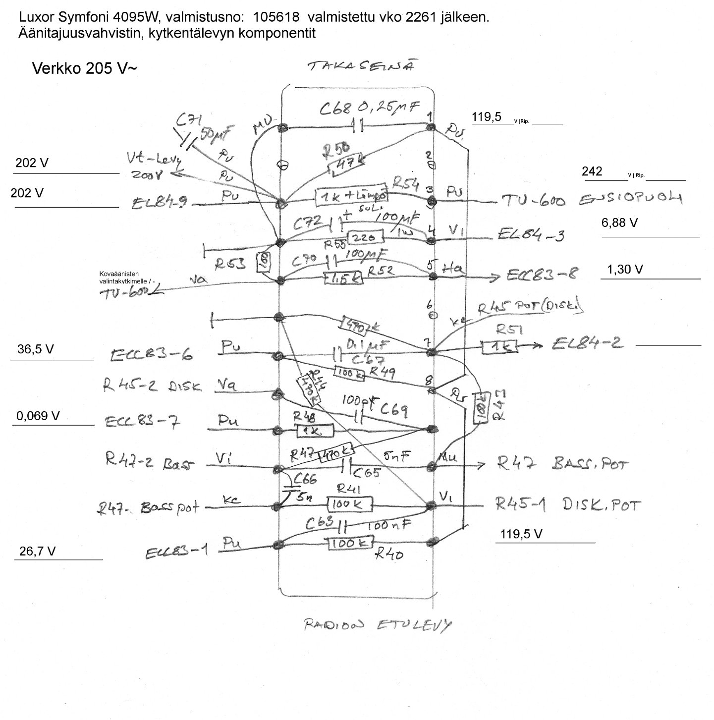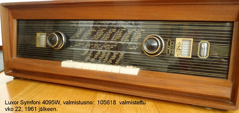 Kun vaihdoin pääteputken katodi-elkon, vanhassa oli valmistusmerkintä 9/61 eli radio on tehty sen jälkeen. ECC83:n katodi-elkon on joku vaihtanut myöhemmin koska oli eri mallinen ja lyhyempi (tod. näk.).