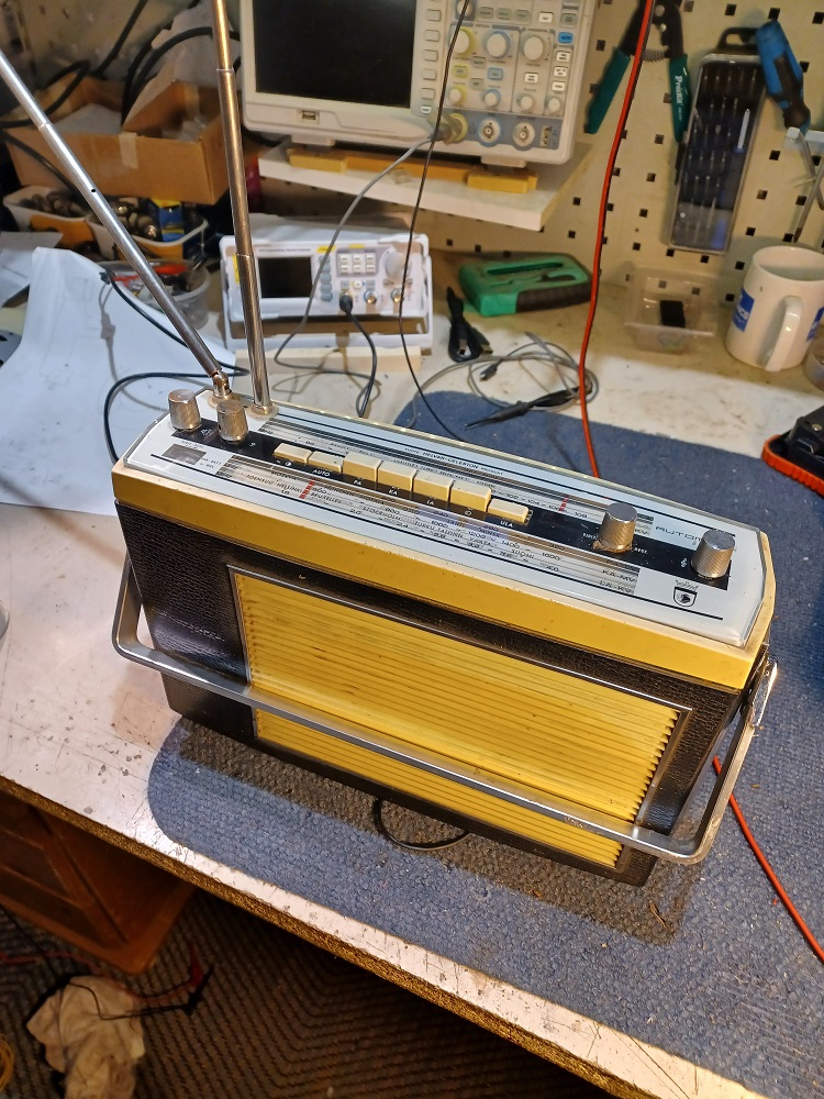 Tietysti tässä ovat antennit huonoja (toisesta  vai kanta jäljellä) .. siis taaskaan tästä ei saa hienoa kohtuullisella vaivalla.  Lisäksi säätönupeista on kromi pahasti lähtenyt. Onko tähän kenelläkään hyvää lääkettä?  Nupit ovat rungoltaan umpi messinkiä.