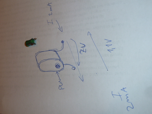 Miten tuon ihmekomponentin tulisi toimia?  Laitoin siitä 2mA virtaa läpi molempiin suuntiin (kuvan mukaisesti) . toiseen suuntaa jännite oli 0,7V ja toiseen 2V.  Viallinen?