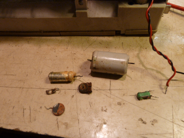 Kun nuo osat (kuva 1) oli vaihdettu, niin radio alkoi toimia hyvin elektroniikan osalta . Ainoastaan lyhyet aallot pätkivät (kytkin?).