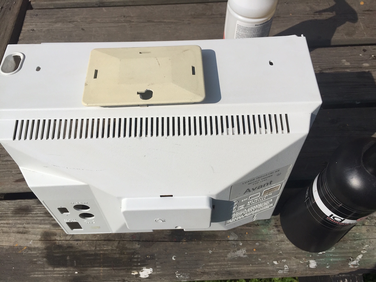 Levitin hyvin pizzan keltaiselle Luxor Avant tv:n kuorelle valkaisuainetta runsaasti. Annoin olla auringonpaisteessa 4h. Pesin valkaisuaineen jäämät pois ja ohessa lopputulos. Hyvä vertailukohta on ennen kuvan vaalea kohta jossa kahva oli suojannut kuorta kellastumiselta.