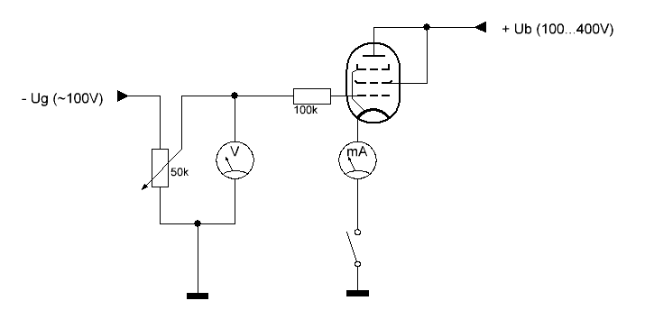 Tosin tarvitaan säädettävät jännitelähteet anodi- ja suojahilajännitteelle sekä negatiiviselle hilaetujännitteelle, hehkujännitelähde, yksi tai kaksi virtamittaria (yleis-) sekä sopiva putkenkanta.