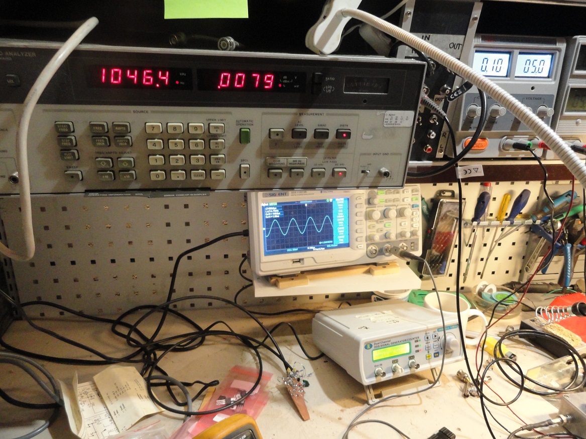 Tulos: 1KHz/ 0,5Vrms lähdöllä 35ohm vastukseen THD=0,014% (P=7,3mW). Kun ulos 0,9Vrms THD 0,04%.