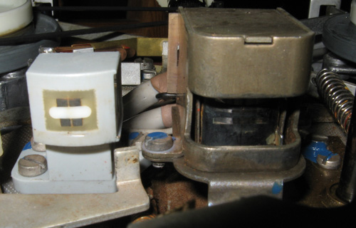 Toinen ongelma on se, että nauhoitus ei toimi. Koneessa on kaksi äänipään näköistä osaa mutta en oikein tiedä mitä kukin niistä tekee. Minulla on vain yksi kelanauha joka on tyhjä joten en ole voinut kokeilla toistoa. Tavallisella C-kasetin nauhalla yritin kokeilla ja jotain epämääräistä ääntä kyllä kuului joten äänipää on varmaankin kunnossa. Kytkentäkaavio on harvinaisen sekava joten siitä ei ole oikein apua. Kone toimii kyllä niin, että sitä voi käyttää vahvistimena levysoitinliitännästä. Kun yritän nauhoittaa niin virityssilmä kyllä sulkeutuu ja avautuu signaalin tahdissa mutta nauhalle ei tule mitään.