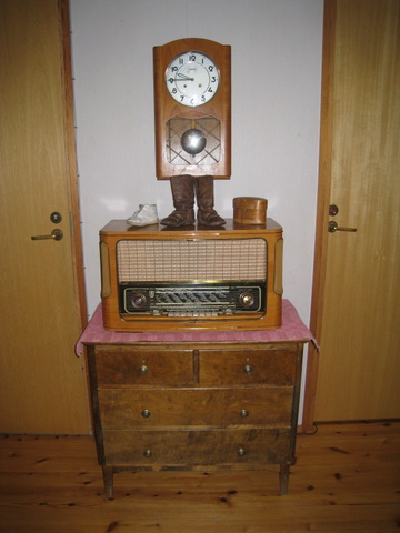Salorakin löysi oman paikkasa Valmet kellon alta. Omat ensiaskelkengät koristeena radion päällä.