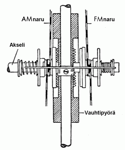 Säätökondensaattorissa on levyt ula ja am-alueita varten.