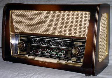 Olen nähnyt muutaman radion, jossa takalevyssä on vastaavalla tavalla isolla keltaisella tekstillä Telefunken. Itselläni on ainakin yksi sanomalehtiin käärittynä. Lienee 50-luvun alkupuolelta. Ihmettelin aina sen omanlaistaan tekniikkaa. Koneistorunko oli käännetty alumiinilevystä jotenkin kotitekoisen näköisesti.