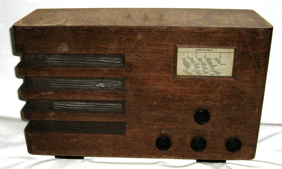 Tuli hamstrattua radioromua ja siellä oli joukossa tuommoinen Ormond. Liekö aito? Kaiutin on lähtenyt kävelemään ja putkista (2 kpl) ei juuri ole kuin kannat jäljellä. Kotelo on aika siisti, nupit tallella ja koneisto muuten suht täydellinen. 30 -luvun alusta lienee? Kunnostusta ei kannattane tehdä, koska aitoja osia ei taida olla käytettävissä.