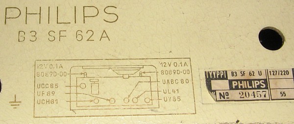 Rassailin pikkuruista Ula-Mattia kuntoon ja ihmetytti takakannen merkinnät. Painetussa tekstissä lukee B3SF62A, mutta putkikaaviossa U-putket ja tyyppitarrassa B3SF62U, niinkuin pitääkin. Lieneekö ollut ylimääräisiä B3SF62A:n takakansia varastossa, jotka on sitten käytetty.