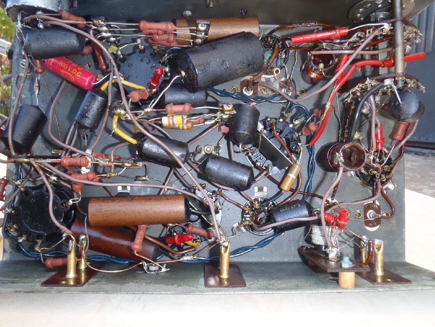 Joku radioista "kiinnostunut" oli joskus yrittänyt irrottaa koneiston melkoisin ottein, koska kahden nupin akselit olivat poikki aivan juuresta ruuvien kohdalta sekä säätökondensaattorissa kiinni oleva langalla