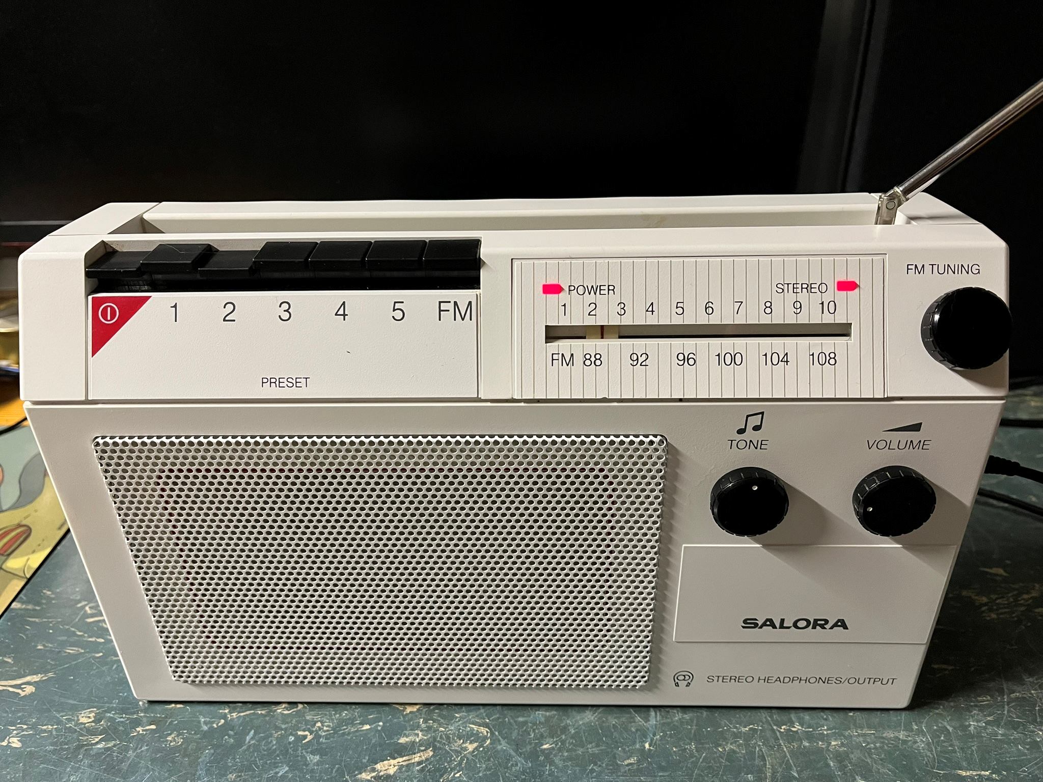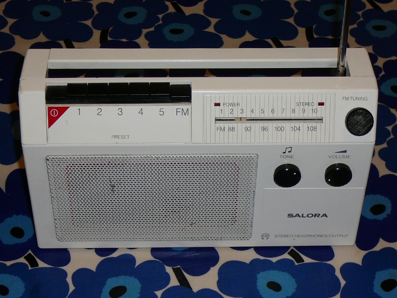 Ostin myös tämmöisen Salora-matkaradion valkoisena ja toimivana kierrätyskeskuksesta. Se on vähän kiinnostanut jo vuosia kun olen entinen Nokian insinööri ja Salora-harrastaja. Muistan että työpaikan (Espoon Karaportissa) eteisvastaanottopisteessä oli juuri samanlainen, mutta tietysti Nokia-merkillä, hiljaa soimassa joskus +25 vuotta sitten.