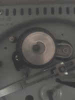Yksi epäilyn kohde on juuri tuo moottorin akselin ja kumirissan kontakti, joka jää pieneksi pinta-alaltaan ja on varmaan herkkä luistamaan, ainakin herkempi luulisin kuin se kumirissan ja lautasen välinen kontakti. Minä karhensin / oistin pintaa varovasti sen jälkeen kun olin kumin ja akselin ensin pessyt pumpulipuikolla ja elektroniikanputsausspraylla. Samoin pesin lautasen keskilaakerin ja laitoin sinnekin hiukan puhdasta vaseliinia. Nyt pyörii lautanen herkästi kun laittaa nopeudenvalintavivun 0-asentoon ja tyrkkää sormella lautasen vauhtiin.