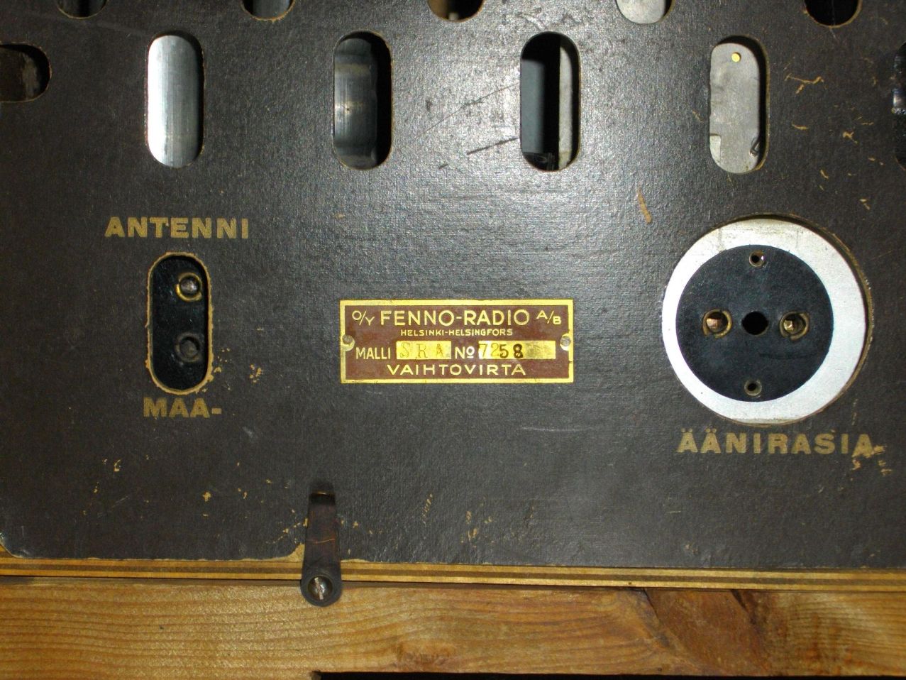 Löytyi tällainen Fenno SRA S4A radio. Pohjassa on epäselvä päiväys, mikä saattaa olla 20.12.1938. En onnistunut löytämään mitään tietoa tästä kyseisestä mallista.