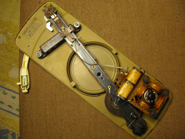 Kannen alla on myös levysoitin, mutta se on kärsinyt todella pahasti hapettumista, ruosteista ja liasta. Löytyisiköhän keltään tähän levaria tai ko. levarin osia ostettavaksi?