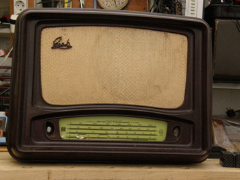 Radio on peltikuorinen ja vuodelta 1951, 3 aluetta.