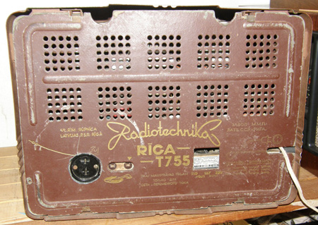 Samoin varastosta löytyy vuoden 1949 malli, eli Riga - T755, myöskin peltikuorinen, kuuluva kuntoinen. Toiselta sivulta puuttuu kaksitoiminen nuppi ja verkkomuuntaja on vaihdettu palaneen tilalle.