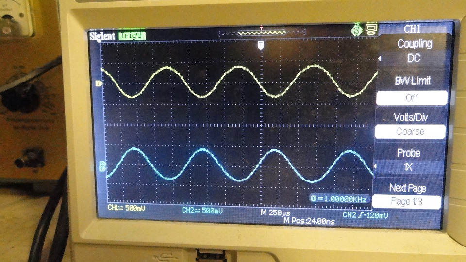 jatkoin tätä projektia. mittasin molemmille pääteputkille menevät hilajännitteet. Siinä vaiheessa kun alkaa sini säröytyä, niin esiasteen putken pinnistä 6 lähtee sotkua ja pinnistä 8 siniä. Kuvat ohessa. Miten tämä on mahdollista... pitäisihän sama virta mennä läpi anodilta katodille??