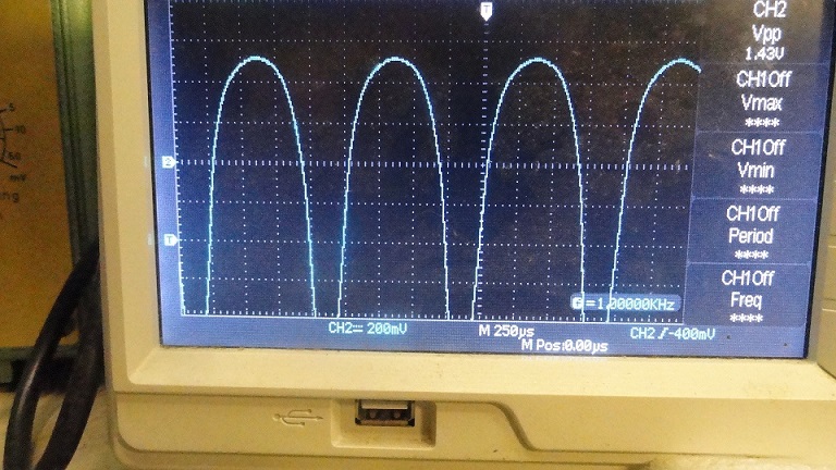 Kaavioon (tuolla aiemmni) merkittyjen DC- jänitteiden perusteella ECC8X-putken vaiheenkääntötriodin virta on 2,3mA ja anodi sekä katodivastukset ovat yhtäläiset. Normaalisti vaihtojännite pin 6 (anodi) ja pin8 (katodi) ovat amplituudiltaan yhäsuuret mutta vastakkaisvaiheiset. Skooppikuvan perusteella anodilla olisi nyt merkittävästi suurempi amplitudi eli putki "vahvistaa". Putken katodilla on siis pienempi vaihtojännitevastus (eli impedanssi)