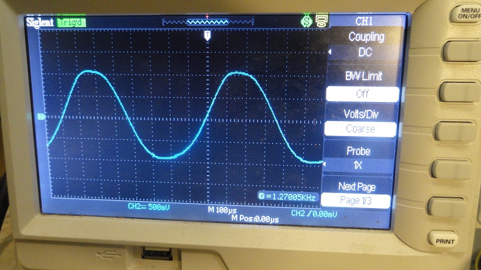 Kuva1 (olin kijoittanut eilen 207V) . Muutin myös hiukan takaisinkytkentää (pois se oikosulkeva konkka C76) . Sain ulos melko puhtaasti 12Vpp ... ja jokseenkin sininä 20Vpp. Kuvassa tuo isompi taso (5V/div).