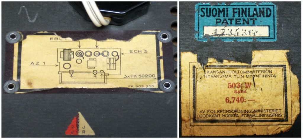 Koneisto on bakeliittirunkoinen, missähän lienee tehty, onkohan oikeasti Saban valmistama?