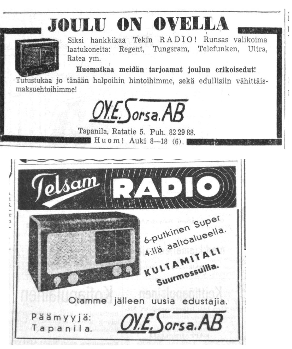 Kotimaiset radiot, televisiot ja äänentoistolaitteet ««