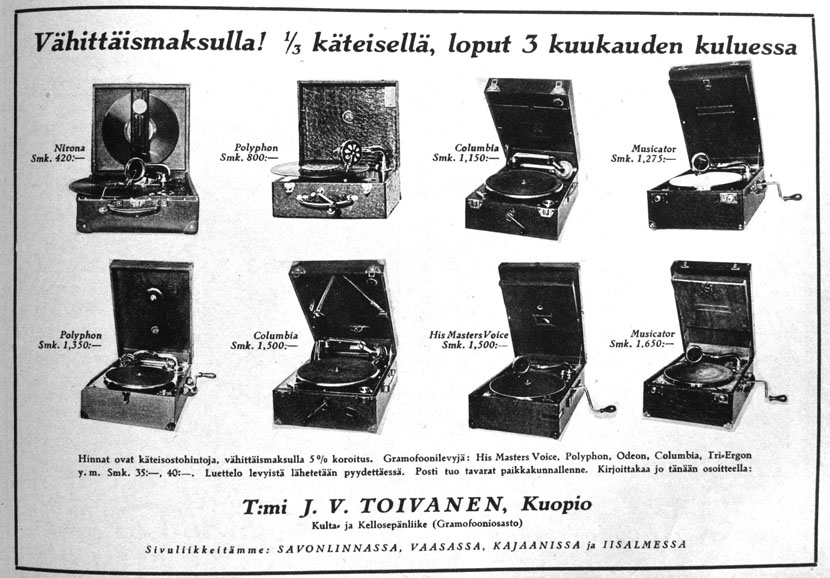 Tässä vielä yksi ilmoitus, joka kertoo T:mi J V Toivasen toiminnan laajuudesta.