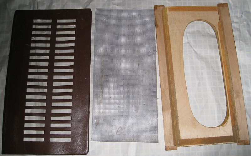 Ajatteli sellaista työjärjestystä että liimaan päädyt, takaosan ja etuosan yhteen muotissa jotta ne pysyy paikallaan liiman kuivuessa. Sitten aukkojen alumiiniverkot ja viimeiseksi nahka palat. Kun nurkat ja saumat on siistit niin maalaan nahkaosat.