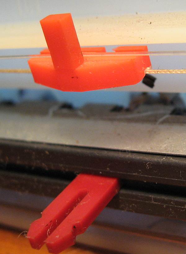 Viimein on viisari tehty. Kaunis se ei ole, mutta asteikkolasin läpi ei onneksi näy kuin pari mm viisarin yläreunasta. Se on tehty neljästä palasta: alaosa on kahdesta kappaleesta, jolloin saatu narurako ja pystyosa on myös kahdesta kappaleesta ohjurisiiman raon saamiseksi.