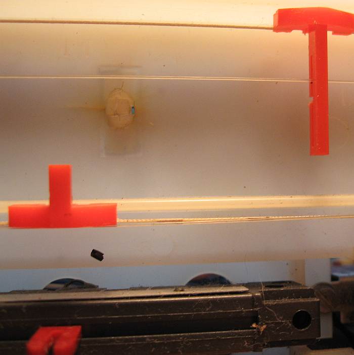 Tässä kuvassa on syy, miksi motivaatio laitteen rassaamiseen oli pitkään hukassa. ULA-naru oli mennyt poikki, mutta hyvinhän tuo on kuminauhasätökselläkin toiminut.
