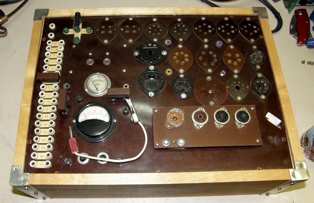 Lisää löytyy ihmeteltäviä laitteita. Tämmöinen vähän kotikutoisen oloinen tai jonkun firman verstaalla tehty tms. putkitesteri. Onkohan tämmöisiä nähty enemmänkin vai onko tämä ainoa yksilö?