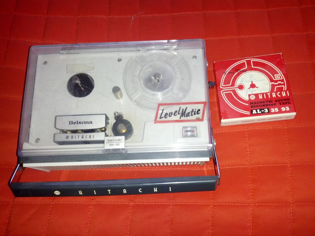 Minulla on perintönä kulkeutunut Hitachi Belsona TRQ-300 kelanauhuri ja sillä tallennettuja nauhoja muistaakseni noin kymmenen kappaletta. Kuva laitteesta ja yhdestä nauhalaatikosta ohessa. Nauhuri on ilmeisesti ollut käyttämättä vuodesta 1971. Yritin voidella ja elvyttää nauhurin mekaniikkaa jokin aika sitten, ja se hetken toimikin, mutta sitten pyöritys lakkasi.