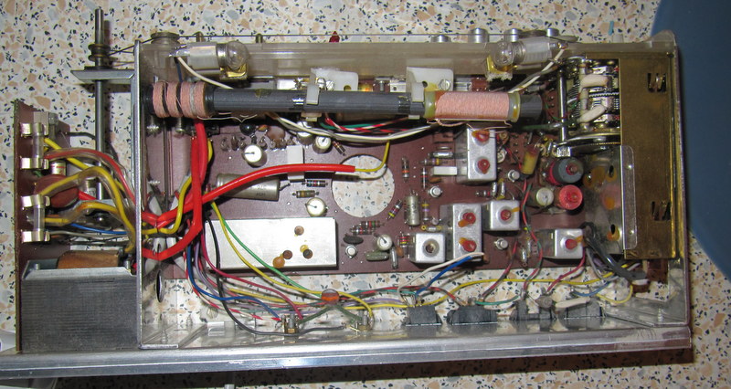 Koneisto oli alunperin suunniteltu matkaradioon ja tästä "jalostettiin" pöytäkone. Keskellä näkyvä aukko oli matkaradiossa kaiuttimen magneettia varten.