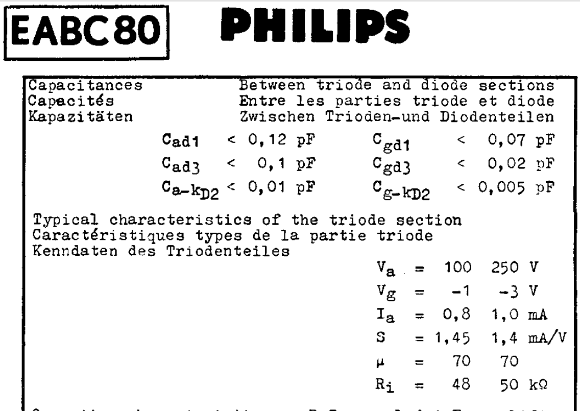 EABC80 triodin ja 5751 yhden puoliskon kapasitanssit näyttäisvät olevan hyvin lähelle samanlaiset, ainoastaan anodin ja katodin välisissä kapasitansseissa on eroa.
