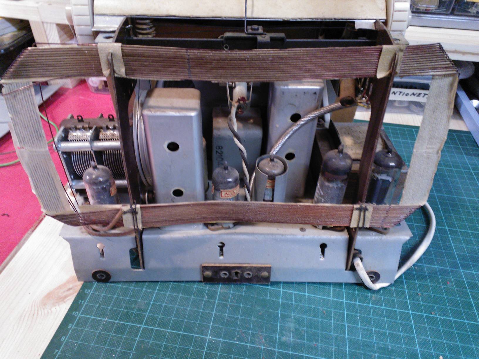Ei ole kaaviota. Stellasta puuttui aaltoalueenvaihdon sormikiekko, vai millä nimellä sitä pitäisi sanoa. Laitoin siihen jonkun vivun. Muuten kone toimi hyvin ja siitä sai paljon meteliä. Nyt en tiedä toimivuudesta. On ollut varastoituna kauan.
