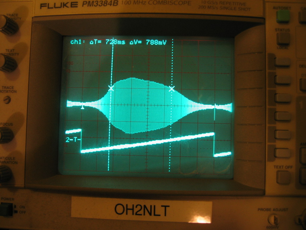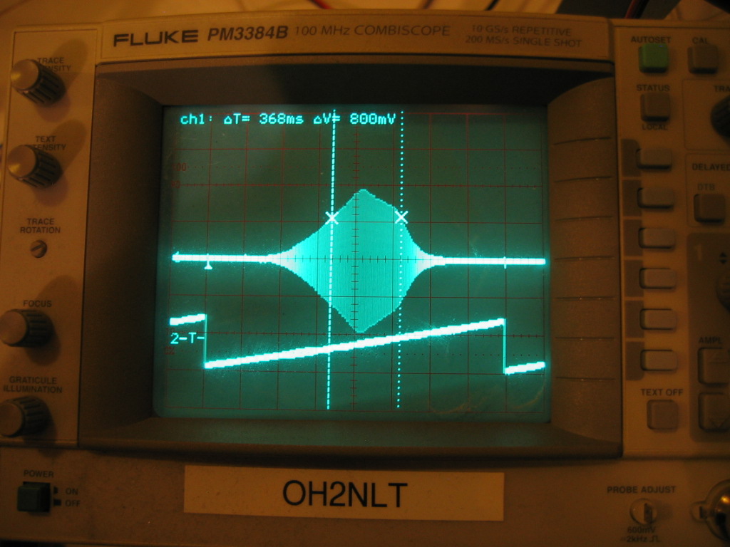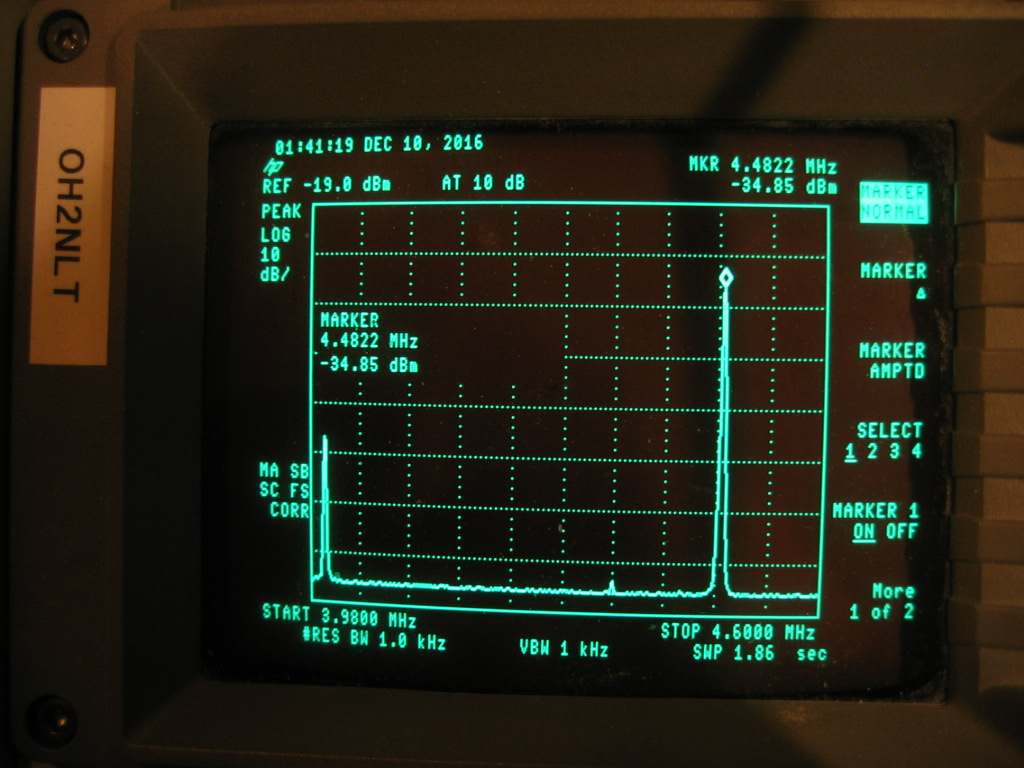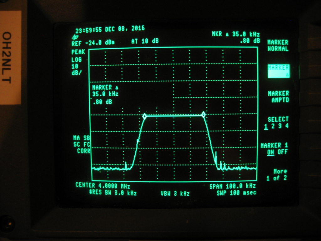 Spektriskoopilla max-hold toiminnolla vielä varmistettu, että saadaan mitä on tilattu eli 35kHz leveä hidas pyyhkäisy.