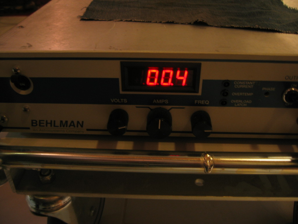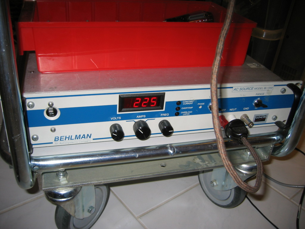 Kuvassa oleva poweri on 1.3kW säädettävä AC teholähde. Taajuus säätyy 45 - 500Hz ja jännite 0-270V. Kätevä peli henkiinherätys testauksessa. Painaa vaan joku 35kg.