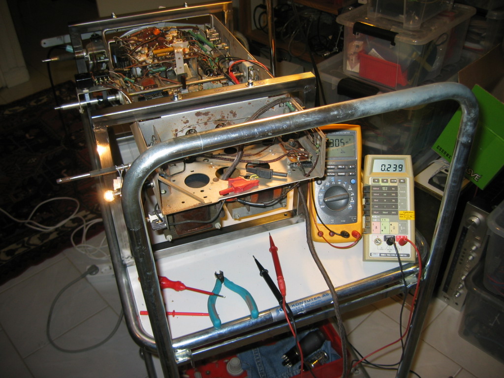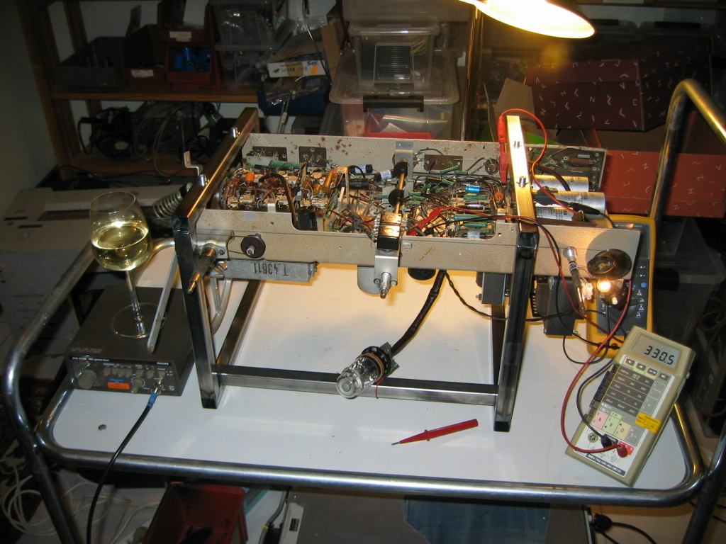 Kun voitonmaljat oli juotu niin heti perään RF:ää antenniliittimiin. Pari pikakoetta 3.7 ja 14MHz taajuudella osoitti radion olevan jollain tavalla kunnossa. Herkkyys ei ole hyvä,mutta ääni virheetön. Taajuuden asetus pysyy hyvin paikoillaan ja IF kaistaleveyden säätö toimii. Modulation Aus-Ein valitsimen toiminta on vielä vähän hämärän peitossa. Tästä on hyvä jatkaa pikkuvikojen etsintää ja hienoviritystä.