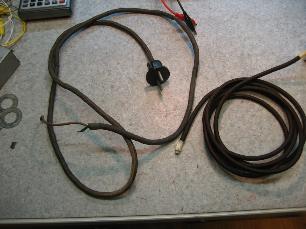 Onko hyviä ehdotuksia millä hapertuneet kumijohtimet kannattaa korvata niin että säilyisi mahdollisimman alkuperäisen näköisenä. Kuvassa näkyvä piuha on verkkosähkön puolella.