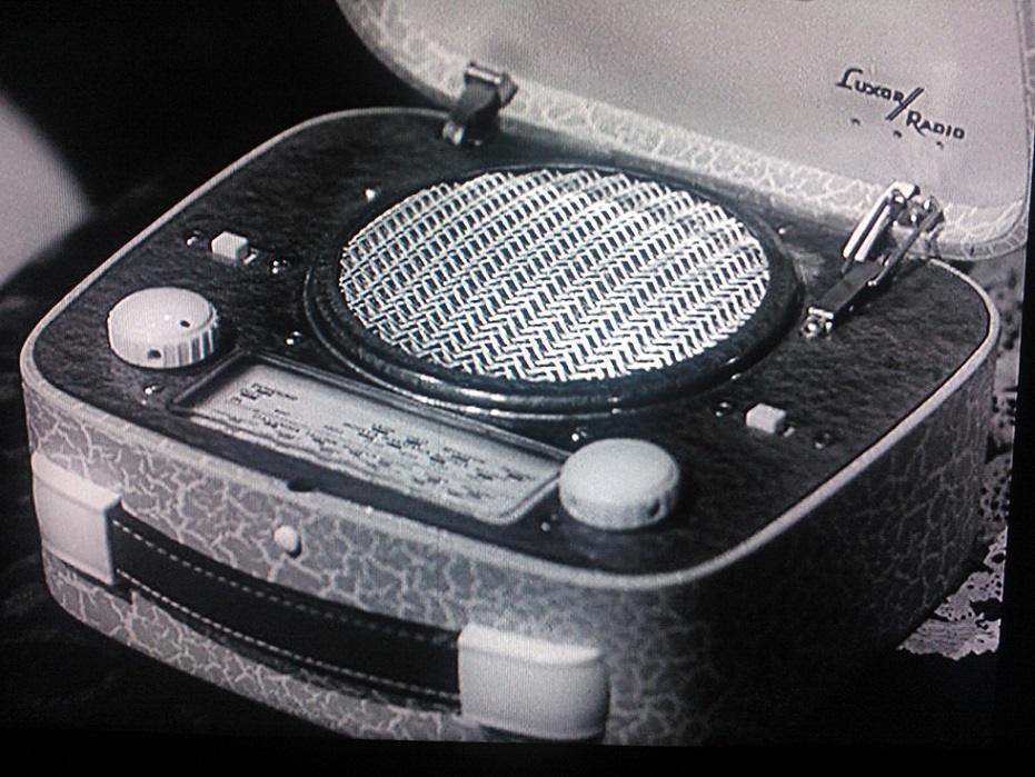 Ja tuollaista Luxor meikkilaukku radiota Justiina kuuntelee elokuvassa Pekka ja Pätkä puistotäteinä.