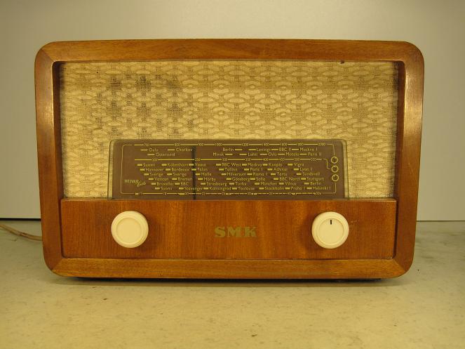 SMK oli Suomen Maanviljelijäin Kauppa, jolle Helvar valmisti muutaman radiomallin, tämä on yksi niistä.