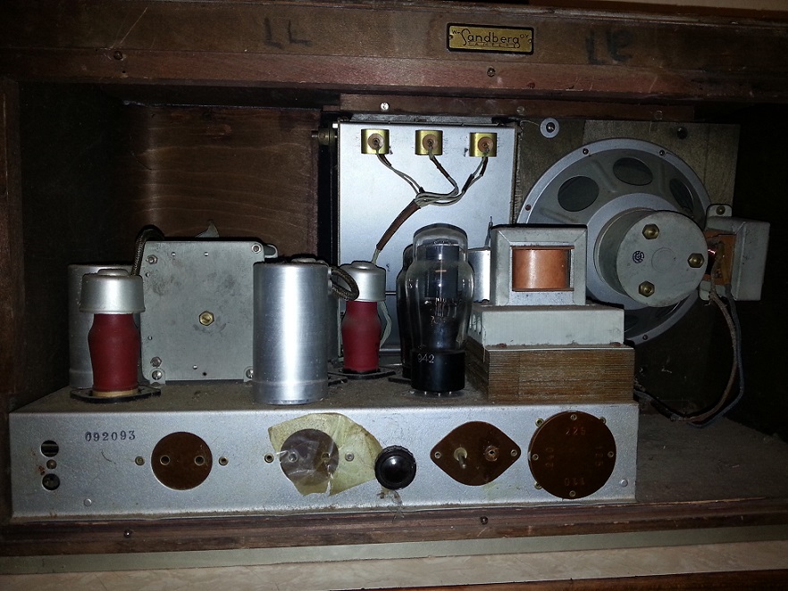 Eräältä navetalta löytyi kuvissa oleva radio, mutta takakansi oli ajan saatossa hukkunut. Olettaisin sen olevan kotimainen radio silla ainoa mitä radiosta löytyy on kyltti "Wm Sandberg Oy Tampere" (kuva alla). Radio valmistusnumero lienee 092093. Olisiko kenelläkään tietoa mikä radio on kyseessä ja miltä ajalta? Kiitos jo etukäteen.