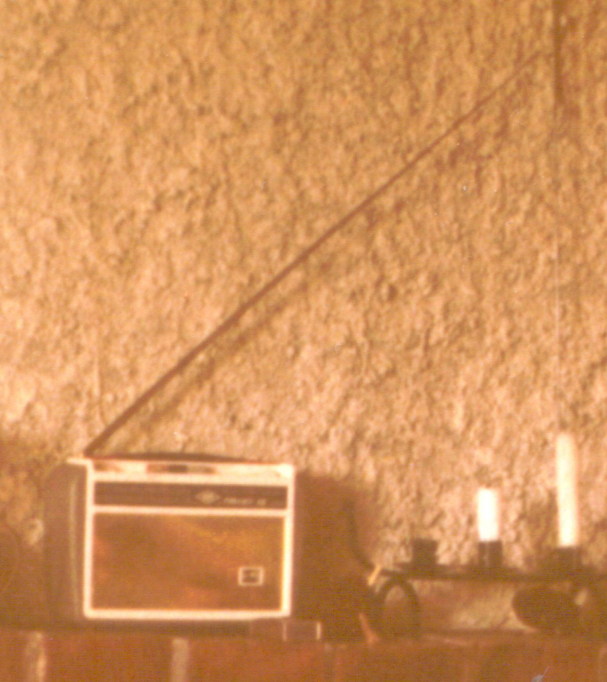Sen verran muistan tuosta radiosta, jonka lapsuutemme leikit tuhosivat, että etuverkko oli rei'itettyä messingin väristä peltiä. Kehysrunko valkea/vaalea muovia, kuori harmaata muovia. Eturitilässä mittari(paristo)?