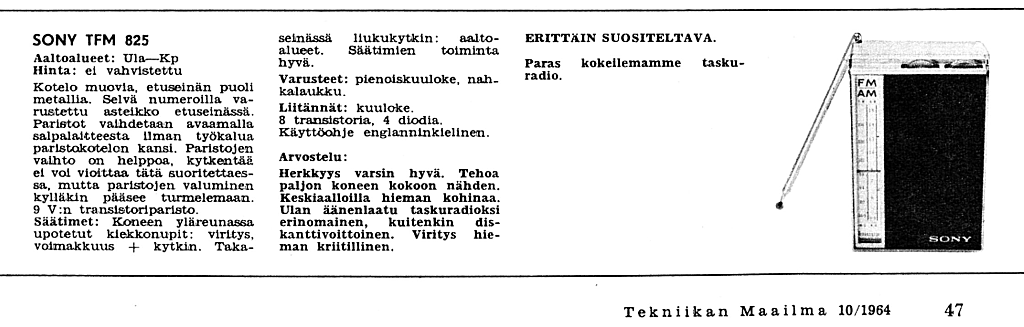 hyvin piirrettyjä huolto-ohjeitakin kuten Sony TFM-825L taskuradiolle.
